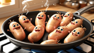 太いソーセージが8本、フライパンでジュージューと音を立てていた。